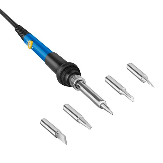 Puntas intercambiables: Incluye un kit de 5 puntas que puedes cambiar y así trabajar con mayor profesionalismo, según lo que vayas a realizar. Están recubiertas de níquel y son estañadas, lo que les asegura una larga vida útil y ayuda desplazar eficazmente la gota de soldadura.